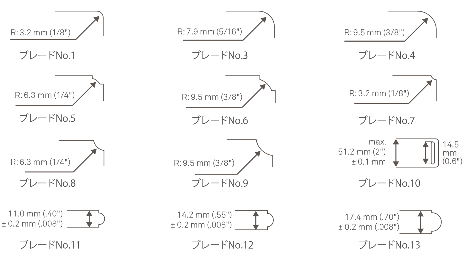 ※ご購入時は、ブレードNo.2(ラウンド R=6.3mm)が付属しています。